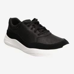 Vergangenes kann zu neuen Ideen führen. Dieses moderne Modell im Athleisure-Look wurde von einem Design aus dem Clarks Archiv inspiriert. Das vollnarbige, schwarze Premiumleder Sneaker mit klassischem Sportschuhprofil und authentischen Ziernähten erweist sich dank robuster Gummisohle als besonders langlebig. Die Mikroperforationen und das Veloursleder bilden einen schönen Kontrast in den Oberflächen. Die leichte EVA-Mittelsohle, die Cushion Max™ Technologie und die Innensohle aus Echtleder garantieren Ihnen optimalen Komfort
