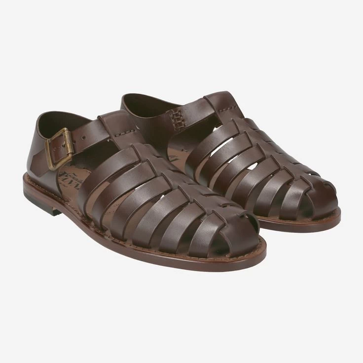 Braune Sandalen von Fratelli Vanni, das Obermaterial besteht aus Glattleder. Ein messingfarbener Metallverschluss erleichtert den Einstieg. Innen ist der Schuh mit Lederfutter ausgestattet, die Ledersohle sorgt für ein gutes Tragegefühl.