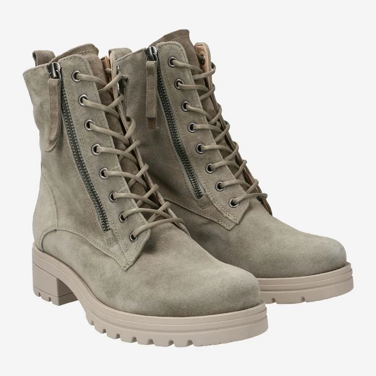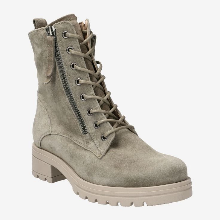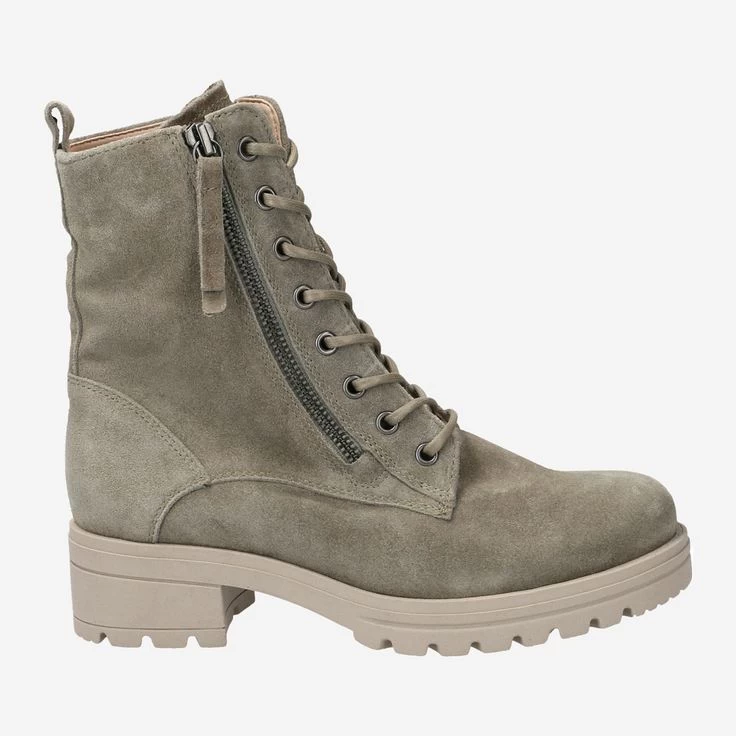 Dieser lässige Boot aus pudrig-grünem Veloursleder rundet Ihren Herbst/ Winter-Look gekonnt ab! Das schmuseweiche Warmfutter umschmeichelt Ihre Füße, und ist super pflegeleicht (100% Polyester). Die helle Sohle verwandelt dieses Modell in einen richtig angesagten Statement-Boot, der Sie als Fashionista auszeichnet! Gabor setzt mit den zwei Reißverschlüssen noch zwei optische Highlights obendrauf! Zum genießen – und zum benutzen, denn damit ist Ihr Einstieg ein Traum!