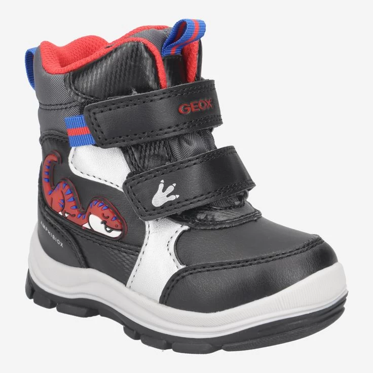 | Merkmale | Warmfutter, Wechselfußbett, für Einlagen geeignet, Innensohle aus Textil (polsternd und atmungsaktiv) / individuell anpassbar, Klettverschlüsse, wasserundurchlässig, atmungsaktiv, maximaler Komfort, Blinkfunktion in der Sohle, 3D Motivapplikation „Dinosaurier“ |