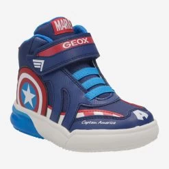 | Merkmale | Wechselfußbett, für Einlagen geeignet, Innensohle aus Textil (polsternd und atmungsaktiv) / individuell anpassbar, Klettverschluss, gepolsterter Schaft, Einstiegschlaufe, Logoprägung, ©MARVEL Kollektion mit Motiv-Applikation (engl.) „Captain America©“ , atmungsaktiv, Blinkfunktion in der Sohle |