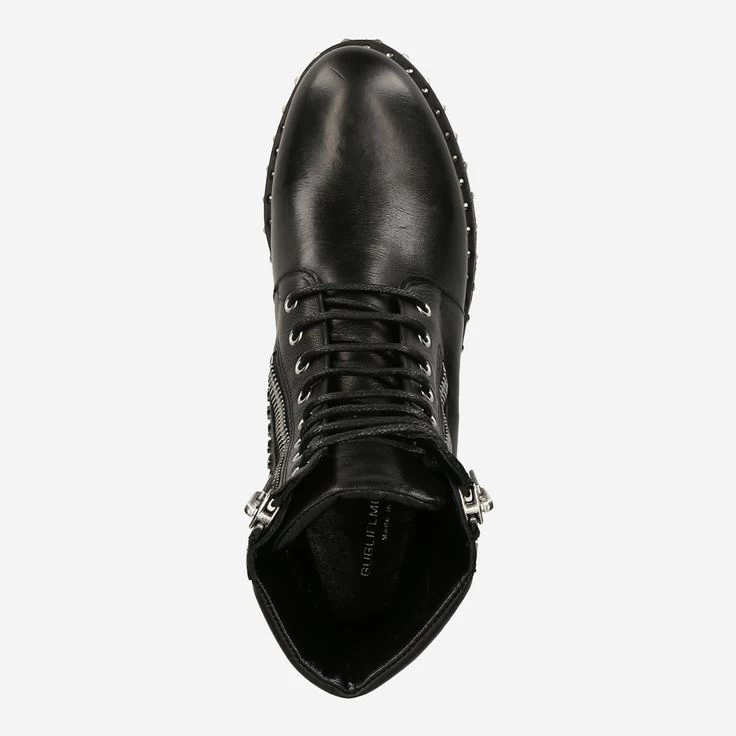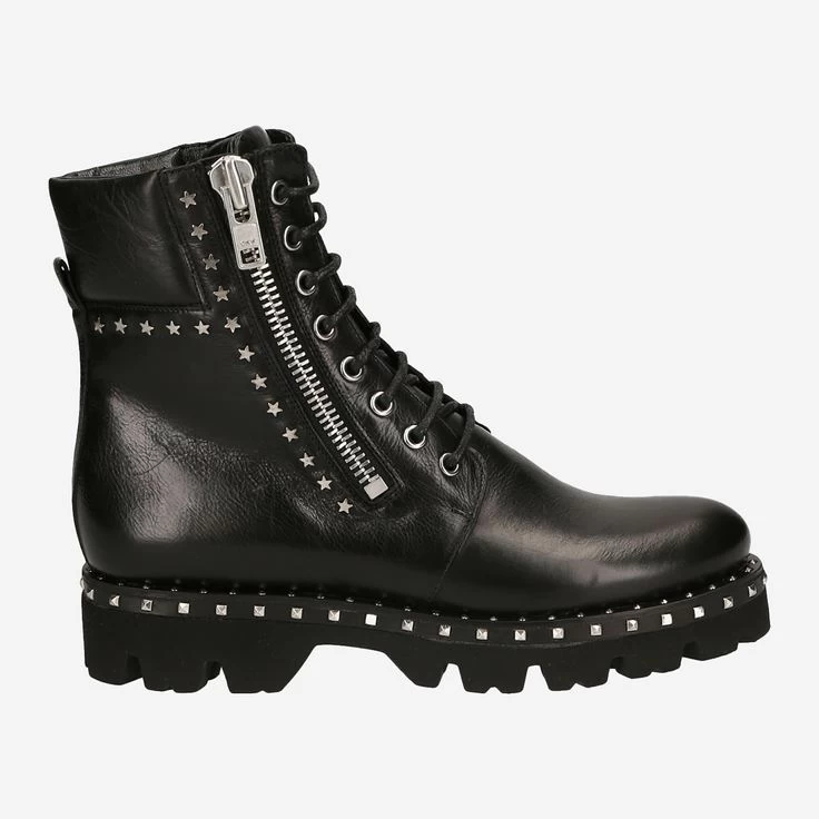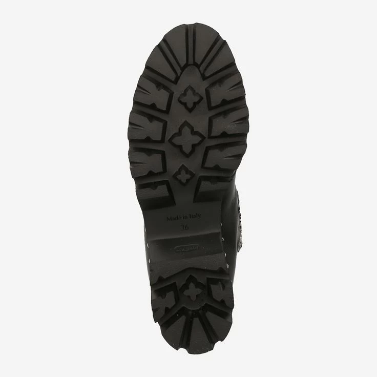 Hochwertiges Leder, auffällige Nietenapplikationen, zwei Reißverschlüsse und stylische Silbersternchen – mit diesen auffälligen Details katapultiert sich Guglielmo Rotta direkt in die Herzen seiner Fans. Die klobige Profilsohle gibt dem Schuh weiteren Charakterzug, der dem Modell das gewisse Etwas verleiht. Ein echtes Liebhaberstück!