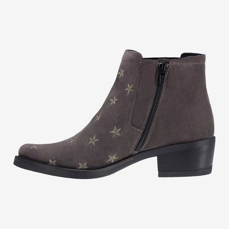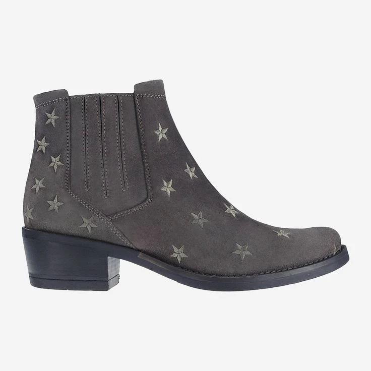 Kanna zaubert mit diesem Modell ein galaktisches Finish in Ihr Outfit. Das graue Veloursleder wurde mit Sternen bestickt und liegt damit total im Trend. Elastische Seiteneinsätze mit Rippelementen sind ein weitere Hingucker bei diesem Model.