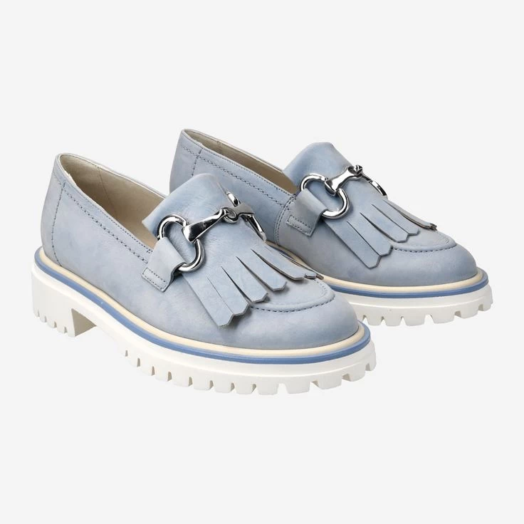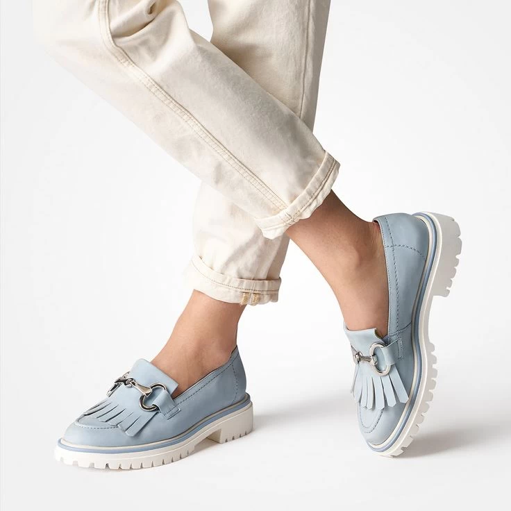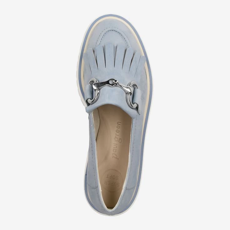 Fashionistas lieben diese SUPER SOFT Loafer von Paul Green, denn sie sind hip und passen zu allem. Durch das hellblaue Nubukleder mit Fransenteil und edler Kette am Ristbereich entsteht ein moderner Modestil. Puristisch edel im Look zeigt sich der Slipper mit flexibler Laufsohle und attraktivem Rahmen. Der ideale Partner für jeden Look!