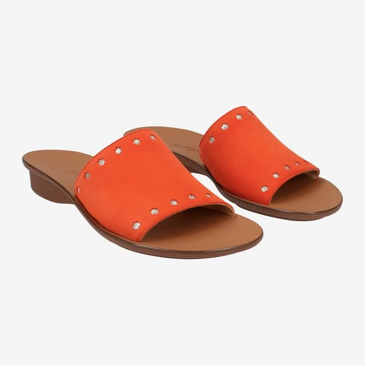 Der Sommer kann kommen, denn mit dieser stylischen und zugleich komfortablen Pantolette von Paul Green sind Sie gut gestylt für die heißen Tage. Besonders weiches Nubukleder im fröhlichen Orange und verspielten Details wie den Aussparungen im Leder in Form von kleinen Sternchen machen den Schuh zu einem Highlight der Saison!