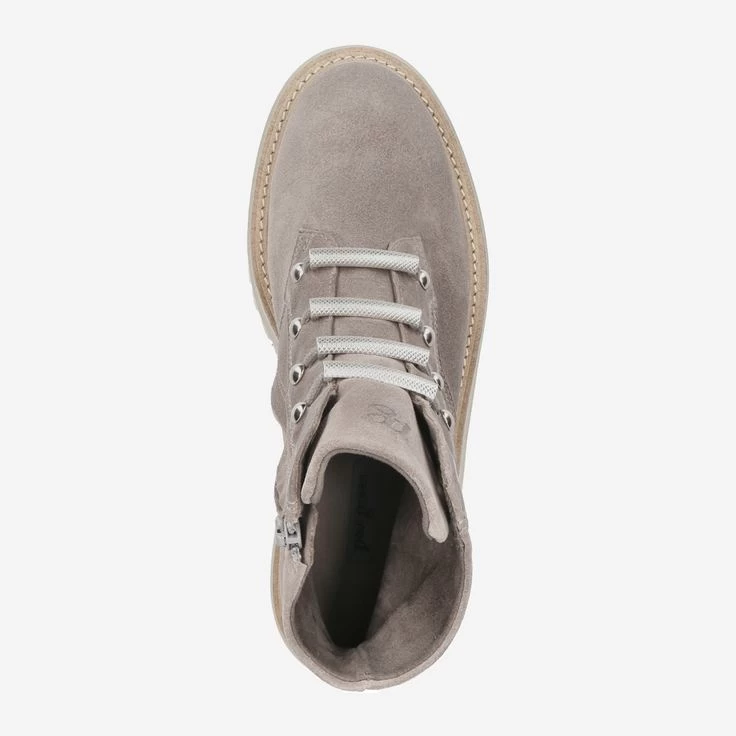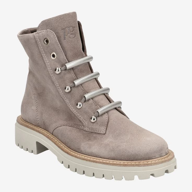 Paul Green greift bei diesem stylischen Boot den einstigen Look des beliebten Worker-Boots auf! Durch die edle Komposition aus grauem Veloursleder, hellen Kontrastnähten, und der innovativen Schnürung ist dieses Modell ein Highlight der neuen Kollektion! Der Einstieg erfolgt über den praktischen Reißverschluss, wodurch die Schnürung als eindrucksvoller Eyecatcher dient! Vier Metallhülsen ergänzen die seitlichen Ziernieten, und erzeugen einen futuristischen, coolen Style! Die oberen Ösen bleiben geöffnet, und runden das geprägte PG-Logo auf der Zunge lässig ab! So macht Fashion richtig Spaß!