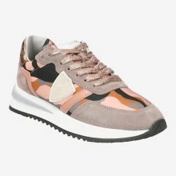 Hier ist der unverwechselbare Signature-Charakter des pariser Designers Philippe Model deutlich zu erkennen! Das Modell TROPEZ 2.1 erzeugt durch den innovativen Materialmix eine harausragende Plastizität. Hier greifen Lederelemente in Textilbereiche über und erzeugen einen exklusiven Look. Die Camouflage-Optik in Senfgelb und Rosa setzt einen spannenden Kontrast zur metallisierten Fersenkappe und den Glitzer-Schnürsenkeln!