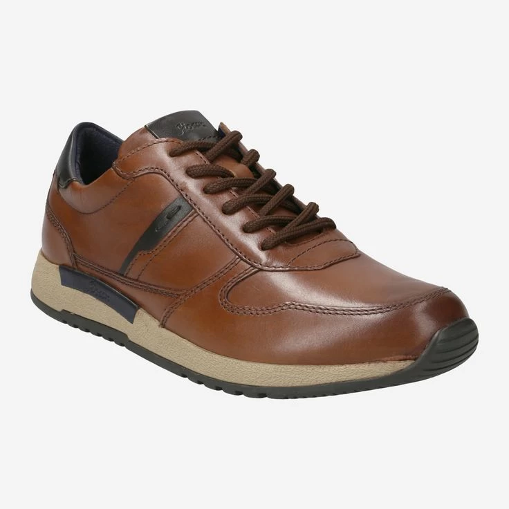 Dieser Schnürschuh von Sioux ist im Gesamtbild durch das braune, handgefärbte Leder geprägt. Das Modell „Rojaro“ ist außerdem optimal für Einlagen geeignet, sein Super Soft Fußbett ist herausnehmbar. Logoprägungen, dunkelblaue Akzente und eine rutschfeste Gummisohle machen diesen Luxus-Sneaker zu einem optischen Highlight.