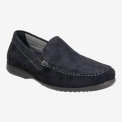 | Merkmale | Wechselfußbett, Stretcheinsätze, extra-weit, extra-leicht, feinstes Veloursleder aus Deutschland, mit wasserabweisender Spezialgerbung, Komfortweite, austauschbares, ergonomisches Fußbett, original handschuweiche Mokassin-Machart, Logoprägung |
