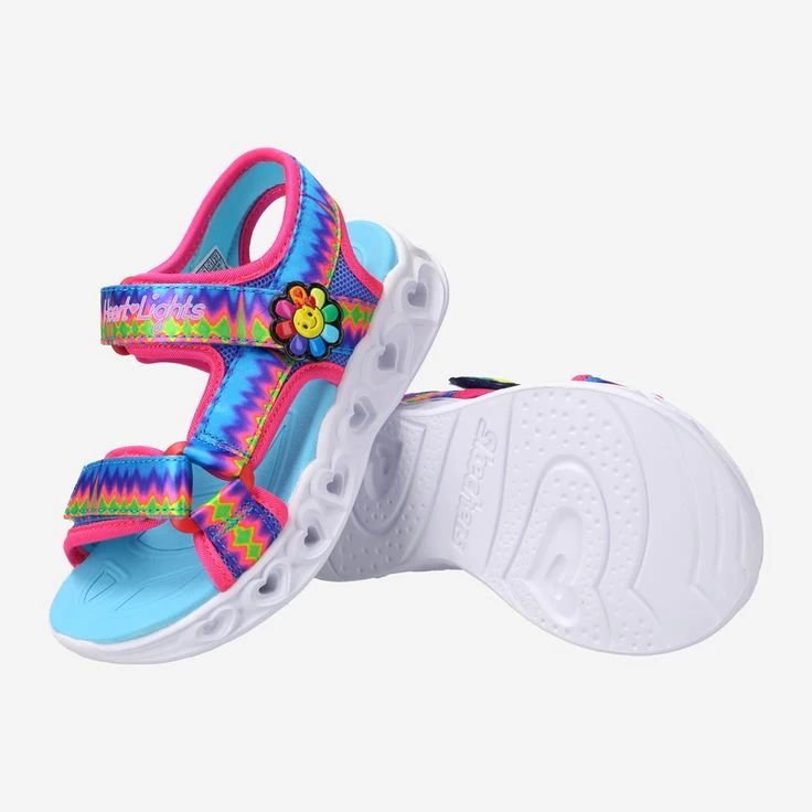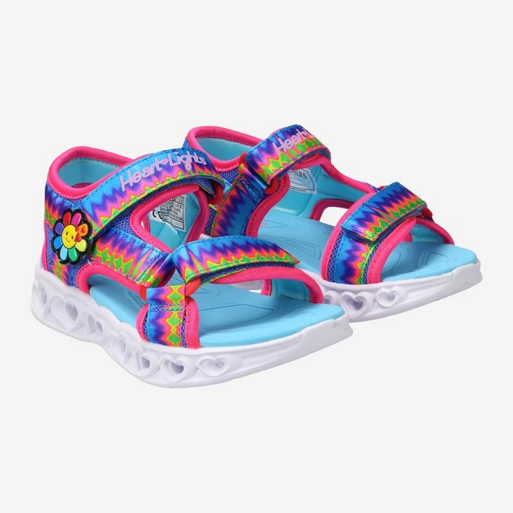 Wir wissen alle, am Ende des Regenbogens wartet eine Schatztruhe. Und dort ist vielleicht neben Gold auch der bunt-verspielte HEART LIGHTS Schuh von Skechers zu finden. Um Ihn besser zu sehen, bietet er eine coole Blinkfunktion entlang der Herzen an der Sohle. Aber auch die verliebt-regenbogenfarbige Blume an der Seite lässt Herzen höher schlagen. Jedenfalls eine ideale Sandale für wundervolle Sommer-Tage voller wunderbarer Entdeckungen und Abenteuer. Und wissen Sie was, wir haben diesen Schuh auch im Angebot, Sie müssen also nicht auf den nächsten Regenbogen warten!