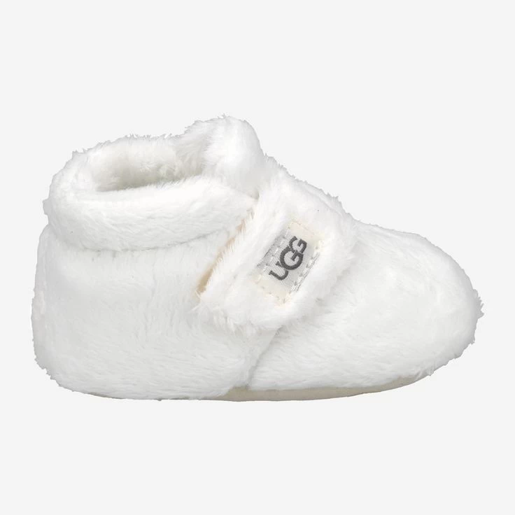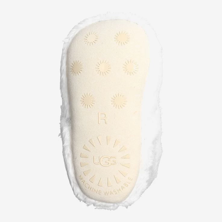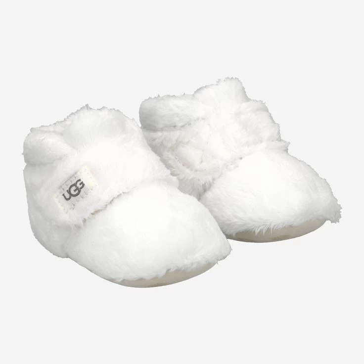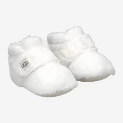 Kuschelalarm! Zückersüß und herrlich flauschig sind diese weißen Baby-Schuhe von UGG. Das schmuseweiche Textil schützt die zarten Füßchen optimal, dazu schützt die gummierte Veloursledersohle vor wegrutschen. Wie soll man hier widerstehen?